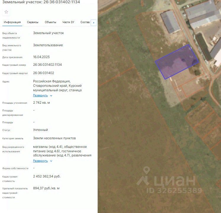 Земельный участок с кадастровым номером 26:36:031402:1134 площадь 2742 по адресу Российская Федерация, Ставропольский край, Курский муниципальный округ, станица Курская, улица Минераловодская