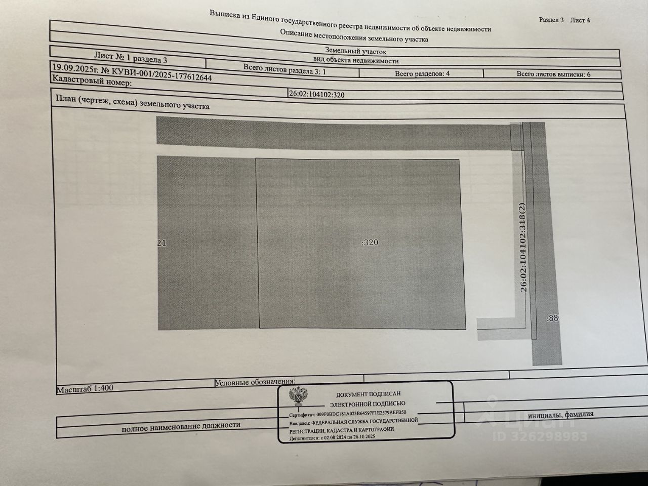 Земельный участок с кадастровым номером 26:02:104102:320, площадью 1189 кв.м., местоположение: РФ, Ставропольский край, Ипатовский МО, г. Ипатово, ул. Крестьянская, земельный участок 7 б, вид разрешенного использования: для ведения личного подсобного хозяйства (приусадебный земельный участок), категория земель: земли населенных пунктов, из земель государственная собственность на которые не разграничена