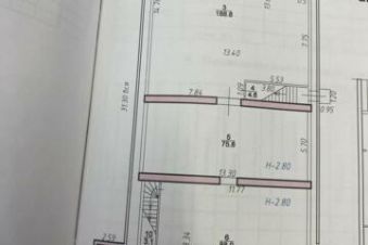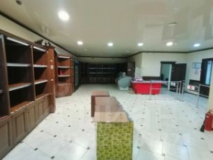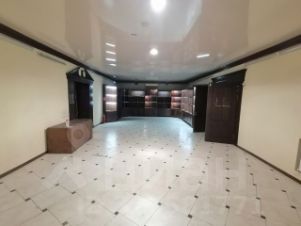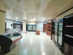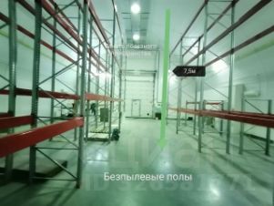 Помещение разделено на торговый зал + склад. В складской зоне — потолки 7,5 м, установлены стеллажи (остаются бесплатно).