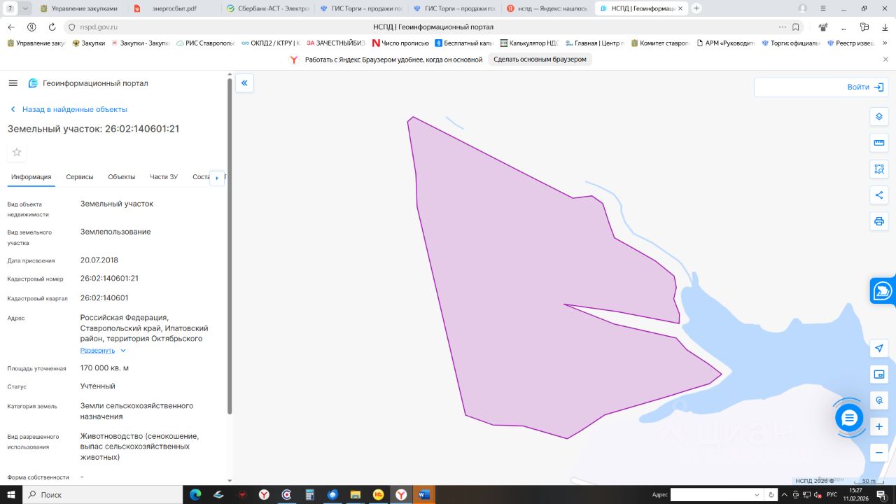 Земельный участок с кадастровым номером 26:02:140601:21 площадь 170000 по адресу Российская Федерация, Ставропольский край, Ипатовский район, территория Октябрьского сельсовета, секция 6 контур 94