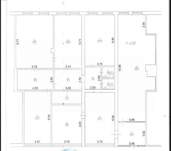 Арт. 128611234 Сдается коммерческое помещение в центре города. Площадь 259,7 кв метров. Есть помещения с окнами, смежные и отдельные комнаты, а также в виде кладовок. 2 санузла.