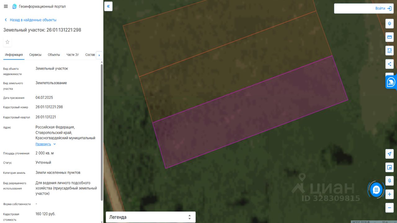 Кадастровый номер: 26:01:131221:298, категория земель: земли населенных пунктов, площадь: 2000 кв. м, вид разрешенного использования: для ведения личного подсобного хозяйства (приусадебный земельный участок), местоположение: Российская Федерация, Ставропольский край, Красногвардейский муниципальный округ, село Ладовская Балка, цель использования: для ведения личного подсобного хозяйства, срок аренды: 20 (двадцать) лет