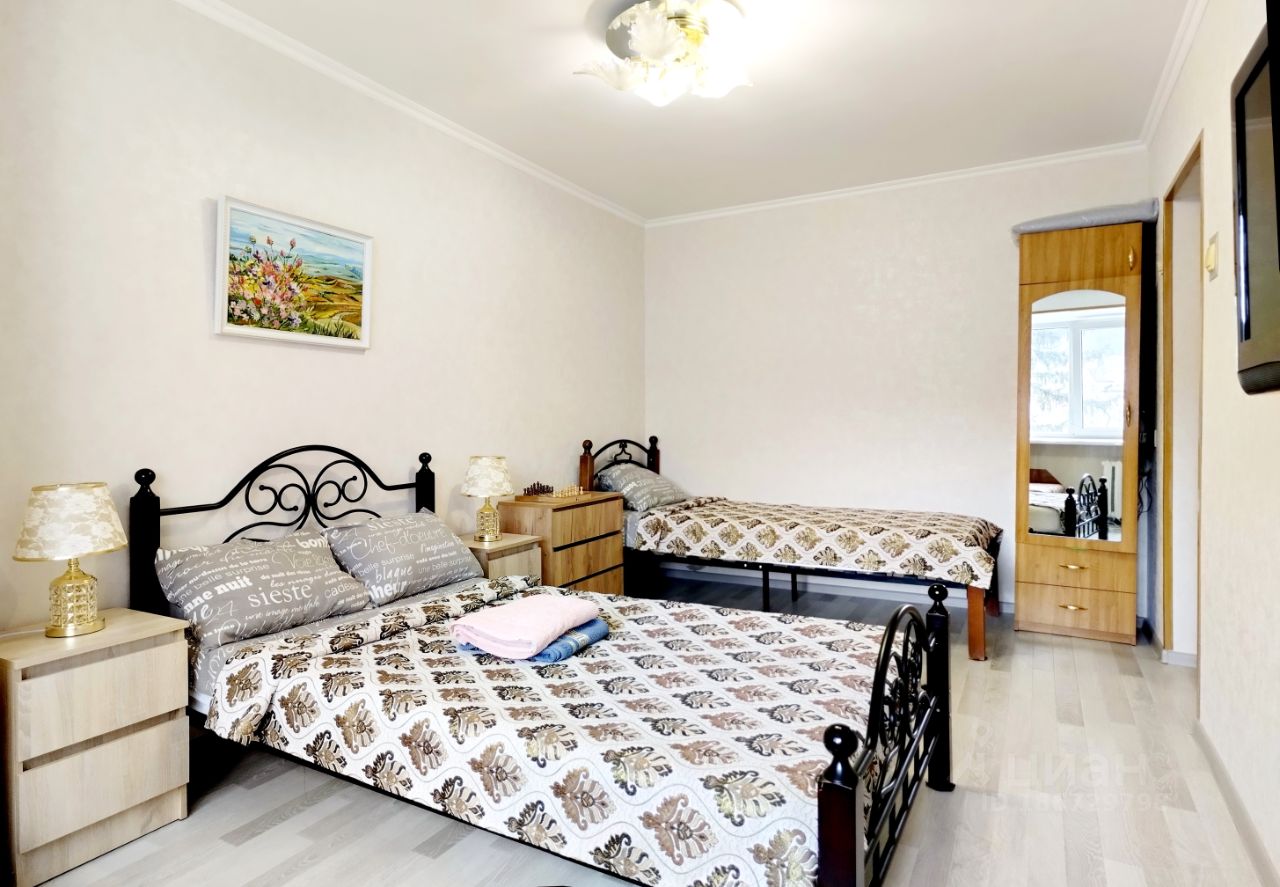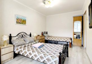 В квартире 3 кровати: 1 двуспальная с ортопедическим матрасом, 1 односпальная с ортопедическим матрасом и раздвижная кровать. Максимально может разместиться 4 человека.