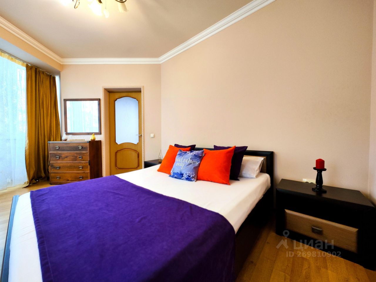 - Спальные места: двуспальная кровать с ортопедическим матрасом + раскладной диван (до 4 гостей). Подходит для семей, пар, командированных и туристов.