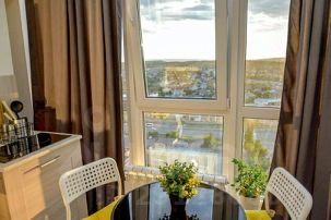 Современная студия с панорамными окнами с видом на Эльбрус в элитном новом ЖК "ЮЖНАЯ КРЕПОСТЬ".