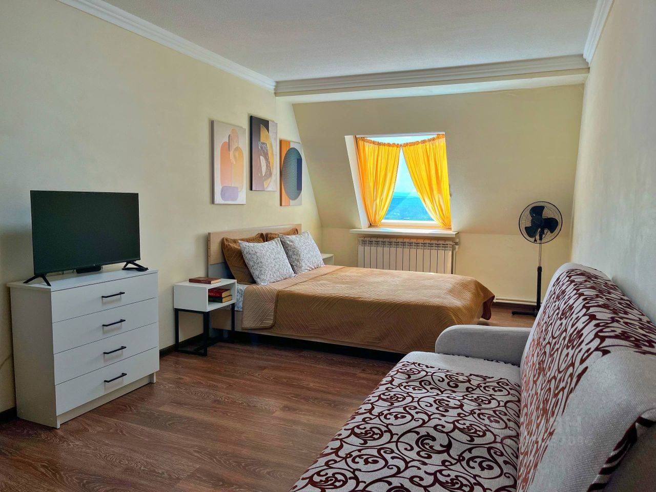 • 6 спальных места: комфортная двуспальная кровать и 2 раскладных дивана