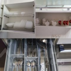 всю необходимую бытовую технику: стиральную и посудомоечную машины, холодильник, духовой шкаф, газовая плита, микроволновая печь, кофеварка, пылесос, 2 Смарт телевизора, Wi-Fi, утюг, фен.