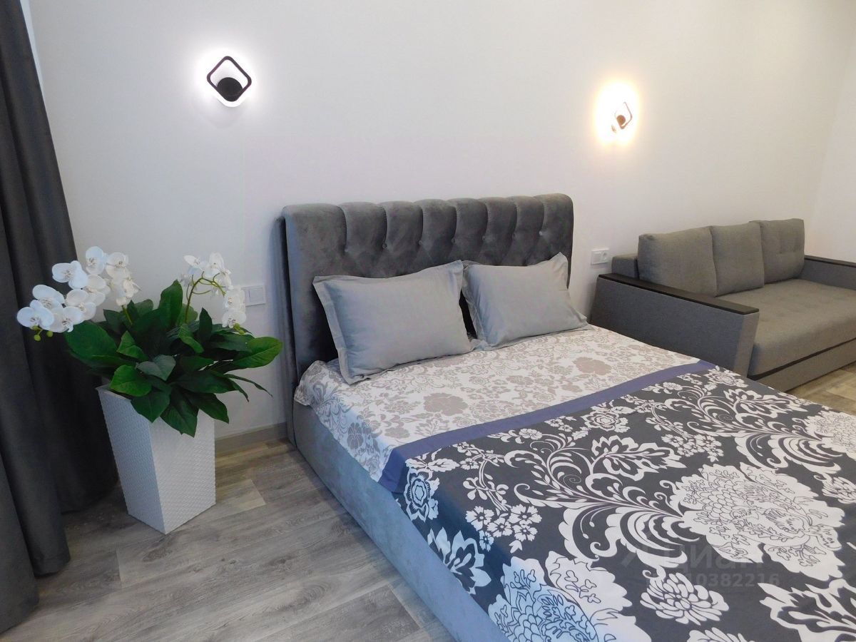 Квартира 55 метра. 7 этаж. 1 изолированная комната, коридор, санузел, просторная кухня со всем необходимым, двухспальная кровать и диван. Есть доп места