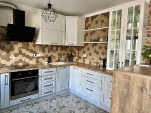 Кухня оснащена всем необходимым: холодильник, духовой шкаф, варочная поверхность , электрический чайник, микроволновая печь. Кастрюли, сковородки, приборы, посуда.