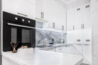 Вся необходимая техника: стиральная машина, кондиционер, микроволновая печь, варочная панель, холодильник, фен, пылесос.