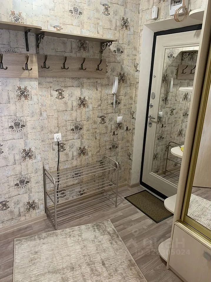 В прихожей расположен вместительный зеркальный шкаф-купе, обеспечивающий удобное хранение вещей. Для удобства жильцов установлена современная стиральная машина.