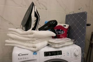 Техника: кондиционер, холодильник, плита, микроволновка, стиральная машина, телевизор, фен, утюг
