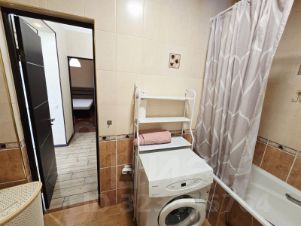 В квартире выполнен евроремонт, что гарантирует комфортное проживание. Есть вся необходимая техника: кондиционер, холодильник, телевизор и стиральная машина. Мебель установлена как на кухне, так и в комнате, что позволяет сразу же заселиться. Санузел совмещенный и оборудован ванной, а окна выходят на улицу, пропуская много естественного света.