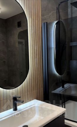 — Супер стильная ванная комната, с новой стиральной машинкой. Зеркало с подсветкой.