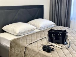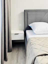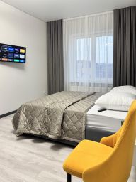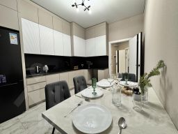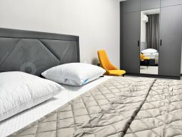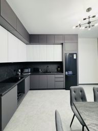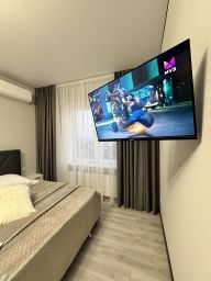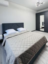 Очень просторная двухкомнатная квартира в доме бизнес-класса . Площадь 78 м2, 4 полноценных спальных места. Две изолированных спальни, в которых находится большая двуспальная кровать с ортопедическим матрасом, большая кухня, балкон с панорамным остеклением.