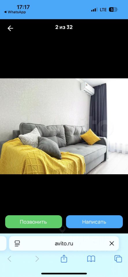 -в комнате диван, большой вместительный шкаф для одежды, телевизор, сплит-система