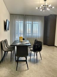Очень просторная двухкомнатная квартира в доме бизнес-класса . Площадь 78 м2, 4 полноценных спальных места. Две изолированных спальни, в которых находится большая двуспальная кровать с ортопедическим матрасом, большая кухня, балкон с панорамным остеклением.