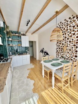 Интерьер выполнен в духе современного минимализма: светлые стены, натуральные материалы, удобство и эстетика. Всё здесь создано для того, чтобы вы чувствовали себя как дома —