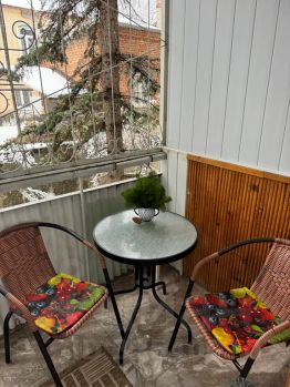 Улучшенка с двумя лоджиями: открытой и закрытой. 2-й этаж, окна во двор, в сторону парка. Приятный бонус: голубые ели во дворе и часто заглядывает на балкон белочка, которую можно покормить ;) Удобное месторасположение: 5 мин до желябовского источника, ещё 2 мин — Курортный бульвар. В другую сторону 7 мин до нового променада с выходом на верхний парк, на аллею роз. Рядом кафе. "Пятерочка". Санатории, где можно принять процедуры.