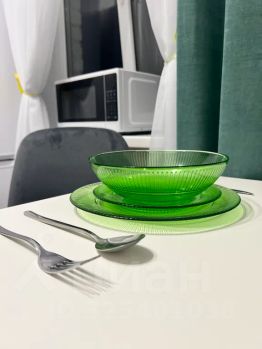 На кухне есть самое важное и не только. Современная посуда, столовые приборы, электро чайник, микроволновка, плита. Красивая подача уже вызывает аппетит. А для этого все необходимое предусмотрено.