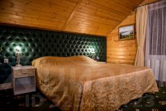 -двухэтажные срубы из дерева, в которых располагаются двухместные номера, отапливающиеся в зимний период. Для комфортного проживания здесь имеется спутниковое телевидение, холодильник, душевая кабина, кондиционер, евромебель.