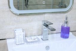 В каждой квартире есть все, что нужно для комфортного проживания: спальные места, постельное белье и полотенца, посуда, микроволновка, телевизор, Wi-Fi, гигиенические и гладильные принадлежности, стиральная машина, холодильник, фен.