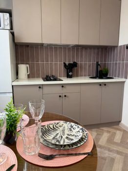 Новая, светлая двухкомнатная квартира с видом на гору бештау и гору железная. Новый дизайнерский ремонт (окончен в декабре 2025), все абсолютно новое (мебель, техника, посуда, текстиль). Центральная локация, прям на площади ленина. Балкон с видом на центральную каскадную лестницу.