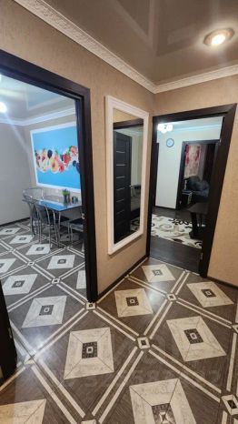 Шикарная кровать , новая мебель и идеальная чистота, все необходимое в квартире есть:постельное белье, полотенца, халаты, бытовая техника, чай, кофе.