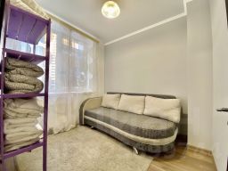 Удобства: быстрый Wi-Fi, телевизор с плоским экраном и цифровое телевидение, кухня, оснащенная всем необходимым для приготовления еды (варочная панель, электрический чайник, микроволновая печь, кастрюля, сковородка, набор столовых принадлежностей на 4 персоны), принадлежности для душа, чистые полотенца и фен, стиральная машина, сушилка для белья, утюг, гладильная доска, кондиционер. В квартире 6 спальных мест: широкая двуспальная кровать с новым ортопедическим матрасом в изолированной спальне. Заправлена чистым бельем с приятным ароматом свежести, 2 удобных дивана-кровати с отдельными комплектами чистого постельного белья во второй спальне и в кухне-гостиной.