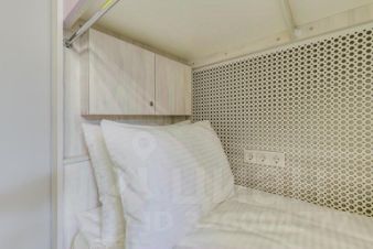 Спальное место в общем номере с гостиной зоной, плитой и принадлежностями для чая/кофе.