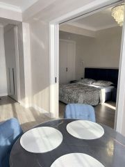 Пространство: Просторная 1-комнатная квартира (50 м²) с современной отделкой, рассчитана на 4 человек. Удобные двуспальная кровать и раскладной диван на двоих.