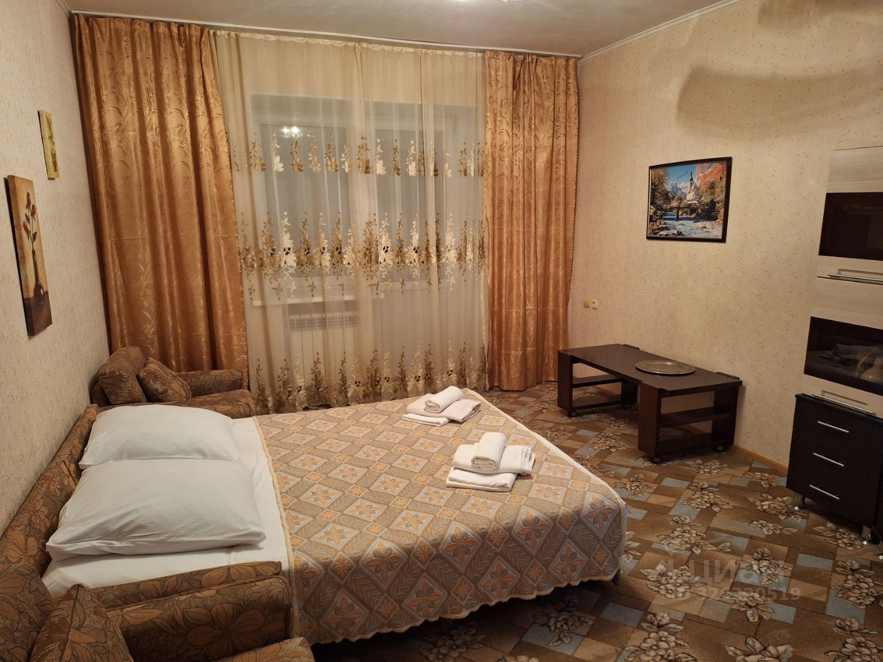 Уютная однокомнатная квартира окнами на восток и железноводский парк с видом на гору Железную. В пяти минутах от дома находится санаторий "Дубрава", рядом с которым есть бювет с минеральными водами, куда вы будете прогуливаться по "Аллее любви". Рядом с домом 3 супермаркета, аптека, сбербанк, кафешки. Остановка общественного траспорта также возле дома. В меблированной квартире двуспальная кровать с ортопедическими матрасами, телевизор, холодильник, встроенная кухня, стиральная машина, а также большая лоджия и гардеробная с зеркальной дверью-купе. Чистое белье и полотенца, прошедшее дез. и паровую обработку в прачечной, гарантирую. Недалеко от дома городской рынок, во дворе дома детская площадка. Всегда рада гостям.