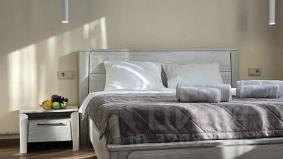Две изолированные спальни для приватности: одна с большой кроватью и TV, вторая с двумя диванами.