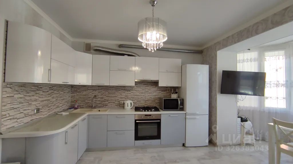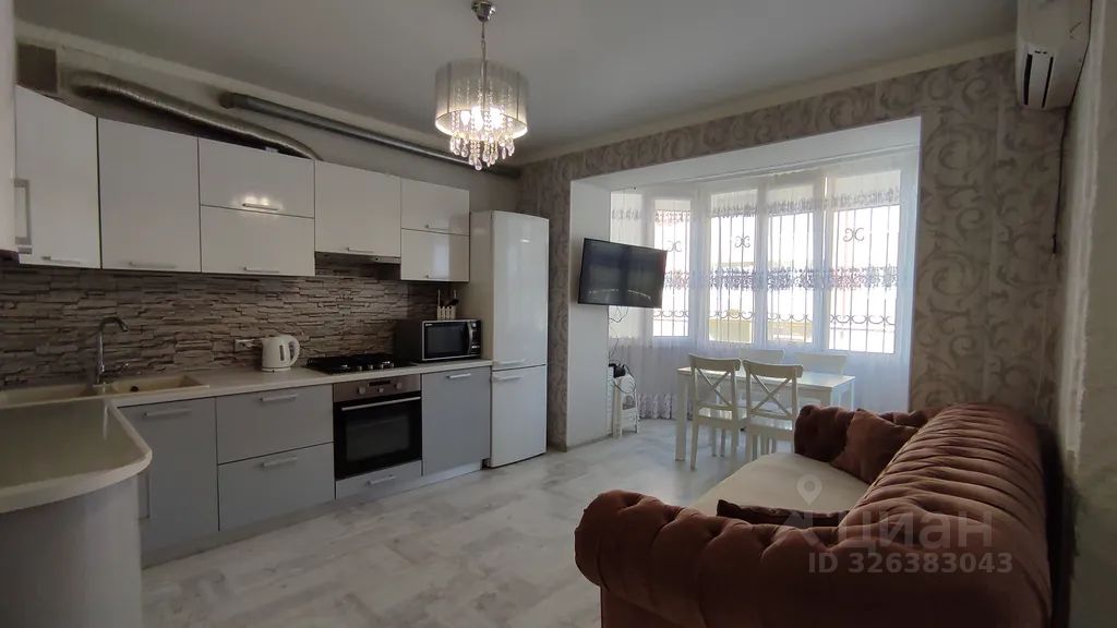 2 спальни с двуспальными кроватями, на кухне двуспальный диван. Совмещённый санузел, полноценная кухня.
