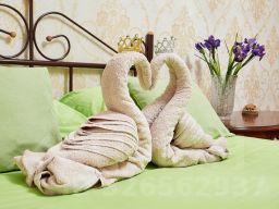 - свежее постельное бельё и комплект полотенец
