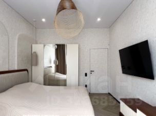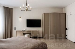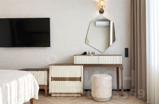 Спальня: Уютная спальня с большой двуспальной кроватью, шкафом для одежды и прикроватными тумбочками, туалетным столиком и телевизором. Интерьер спальни выполнен в спокойных тонах, создающих атмосферу уюта и расслабления.