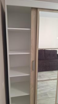 Квартира полностью готова к комфортному проживанию. В комнате и на кухне есть вся необходимая мебель. Современная техника включает в себя кондиционер, холодильник и стиральную машину.