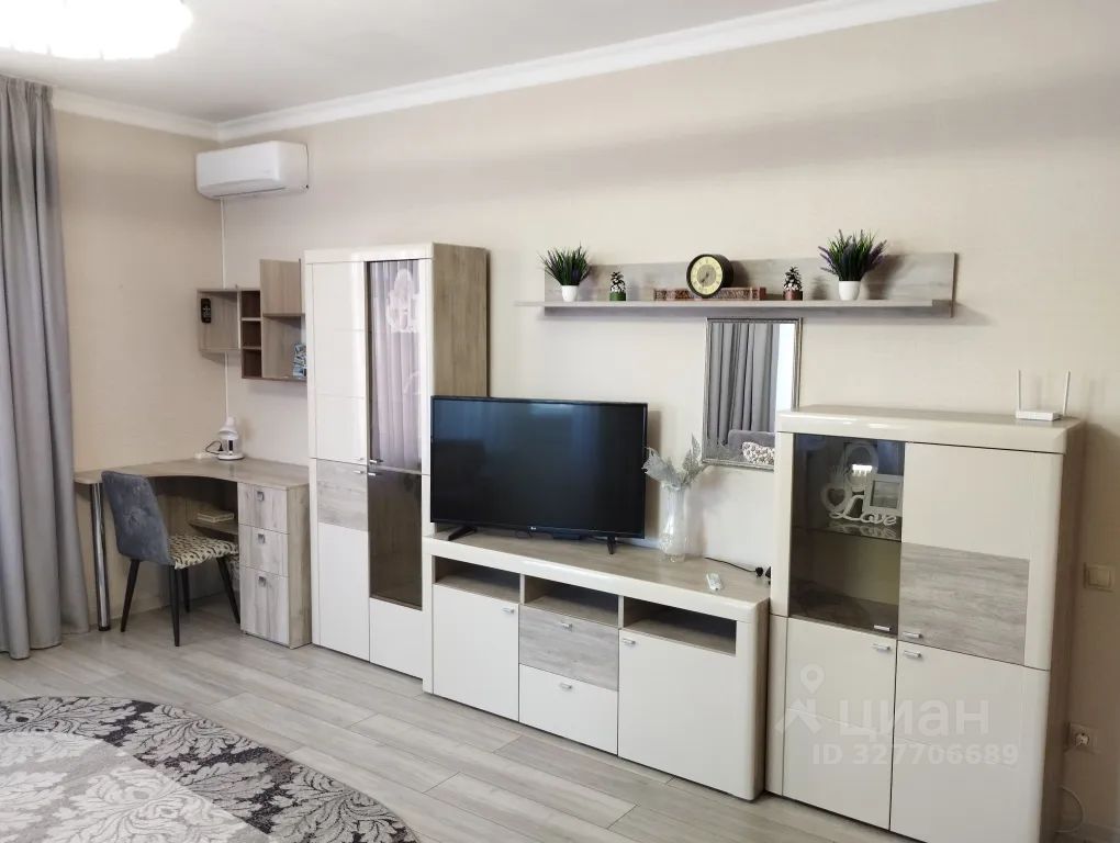 - 2 жилых комнаты: площадью 20 кв. м с 2-спальной кроватью, большим шкафом-купе и телевизором и площадью 25 кв. м с раскладным диваном на 2 спальных места и креслом-кроватью, журнальным столом, стенкой с телевизором и компьютерным столом.