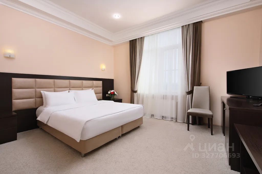 Номер с кондиционером, феном, холодильником, телевизором с плоским экраном. Одна комната, TV, душевая комната. Шкаф-купе, полки для обуви, двуспальная кровать 2 прикроватные тумбочки, пуфик.