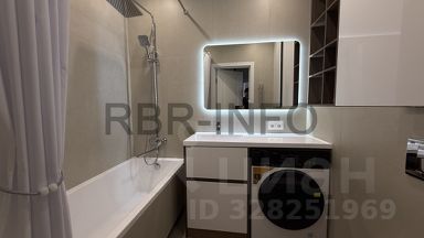 Ванная 4,5 м² — новая стиральная машина, зеркало с подсветкой, встроенные шкафчики.