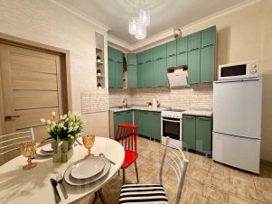 В квартире есть постельное бельё, полотенца, тапочки, посуда и вся бытовая техника,