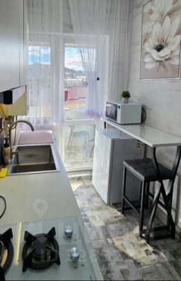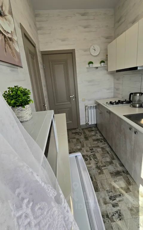 Квартира находится на 2 этаже. Комната и кухня с с/у разделены коридором, расположены прям напротив друг друга (см. фото).