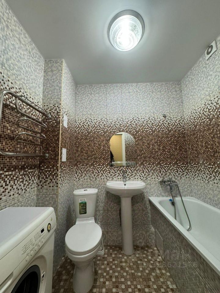 В квартире есть всё необходимое для комфортного проживания: современная мебель как на кухне, так и в жилой комнате. Для вас уже установлены холодильник и стиральная машина. Высокие потолки (2,8 метра) добавляют ощущения простора и света. Ванная комната оборудована ванной, стиральной машинкой, а совмещённый санузел делает планировку более удобной.