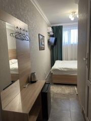 Номер подойдет для размещения 2 гостей. Спальные места: одна двуспальная кровать. В номере есть: жк телевизор, Wi-Fi, сплит-система, отопление, двуспальная или односпальные кровати, шкаф, зеркало, холодильник, чайник и стаканы, тапочки. В ванной комнате: душевая кабина, туалетные принадлежности, полотенца, фен, туалет. Площадь номера: 11 м2.