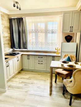 Новая мебель и техника, разнообразная посуда и приятный вид из окна на детскую площадку и двор. При длительном бронировании возможна скидка.