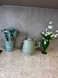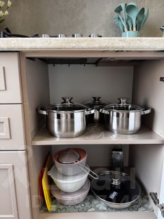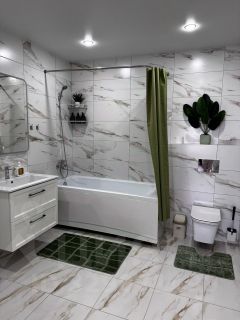 - Полностью укомплектованная кухня с обеденной зоной, посуда для приготовления и принятия пищи, столовые приборы, варочная панель, посудомоечная машина, холодильник, стиральная машина, СВЧ, эл. чайник, фен.