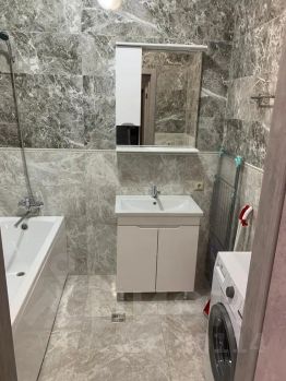 Санузел раздельный, установлена ванная, стиральная машина, фен.