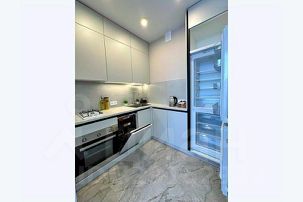 Кухня оборудована холодильником, посудомоечной машиной, микроволновой печью, чайником и варочной поверхностью.