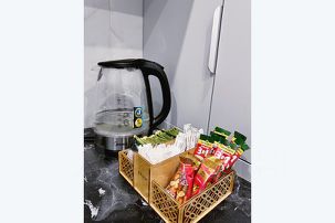 * Полностью оборудованная кухня с посудой, небольшим запасом продуктов, чая и кофе — всё, чтобы почувствовать себя как дома.