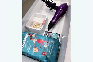 * Полный набор гигиеничных средств: шампунь, гель для душа, бальзам для волос, скраб, тоник для лица, гель для интимной гигиены, масло для массажа, крема и многое другое.